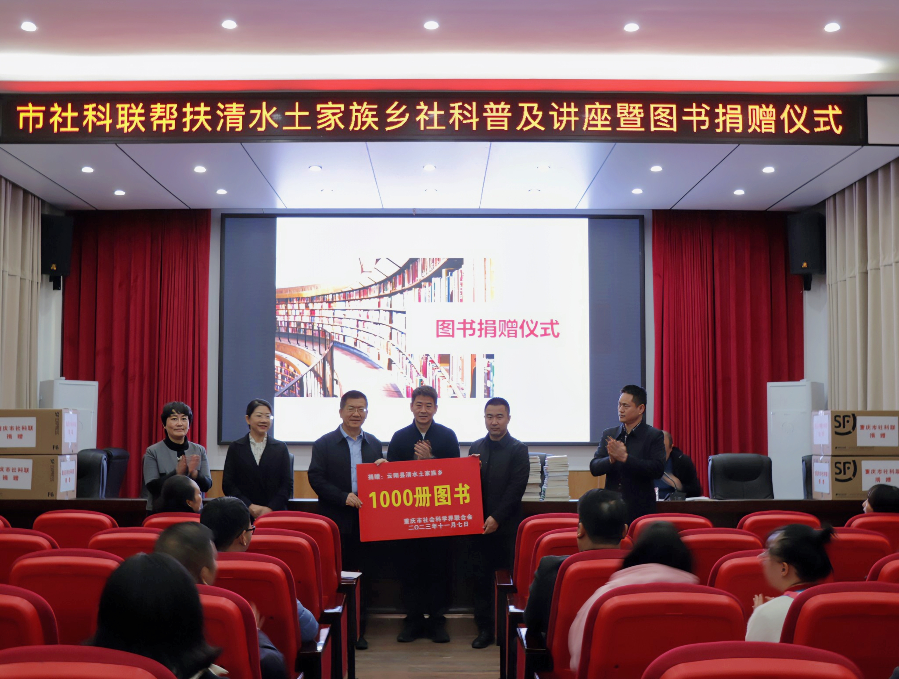 为深入贯彻落实党的二十大精神和市委六届三次全会精神,更好助力乡村振兴,2023年11月6日至7日,市社科联党组书记、副主席李保海一行赴云阳县清水土家族乡开展社科普及讲座暨图书捐赠活动。市政协办公厅帮扶集团驻乡工作队队长田野,市社科联二级巡视员、秘书长李友康,市社科联办公室主任杨晓燕,市社科联普及部部长周绍新,清水土家族乡乡长周英海出席,社科专家赵劲梅、市社科发展中心七级职员田荣参加,清水土家族乡副乡长郝国庆主持活动。