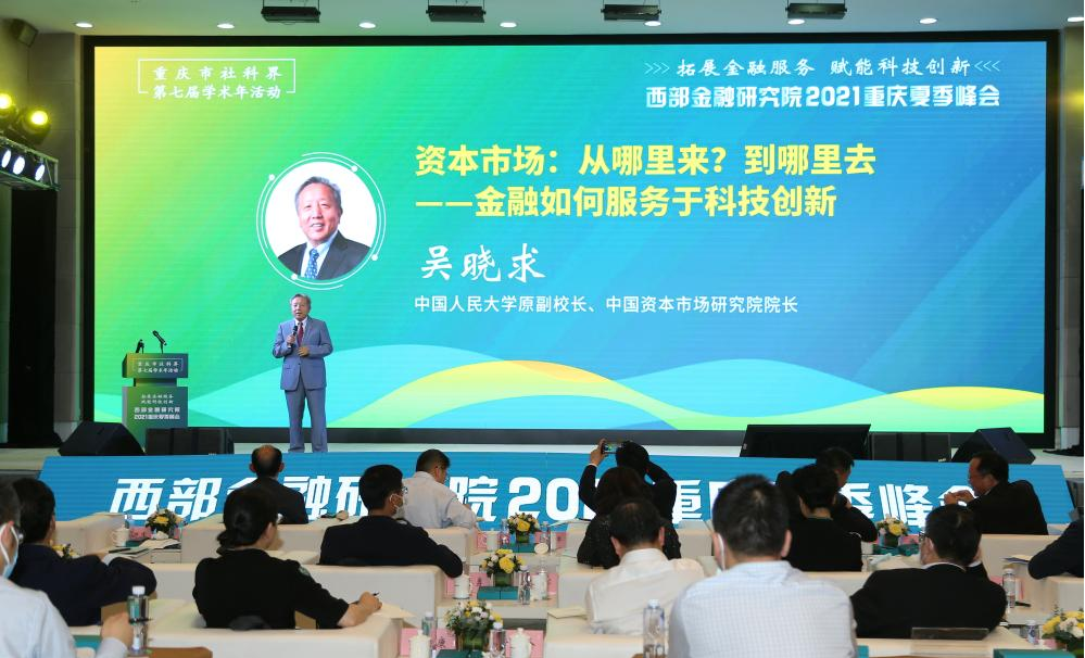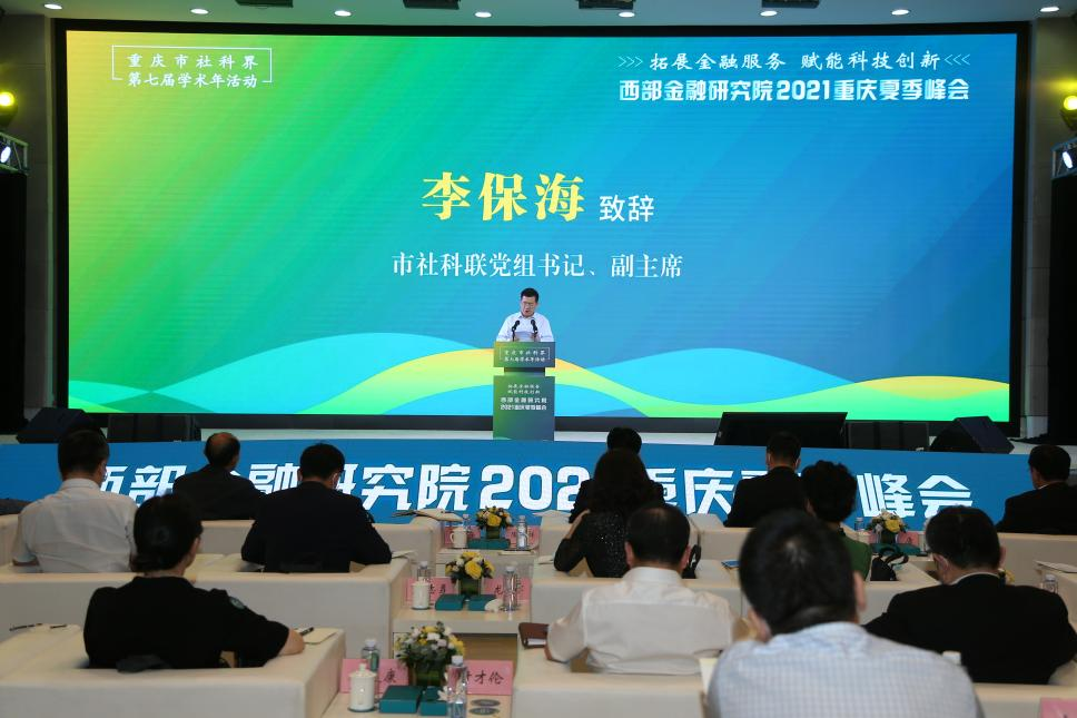 2021年6月3日,由重庆市社会科学界联合会主办,重庆江北嘴中央商务区管理委员会办公室、重庆江北嘴金融促进会、重庆市西部金融研究院承办的重庆市社科界第七届学术年活动“拓展金融服务 赋能科技创新”西部金融研究院2021重庆夏季峰会在重庆市科技馆举行。中国人民大学原副校长、中国资本市场研究院院长吴晓求,国务院研究室原司长唐元,复旦大学经济学院院长、中国经济研究中心主任、重庆市“十四五”规咨委专家张军等国内经济金融界知名专家学者与我市业界代表人士参加会议。峰会围绕如何拓展金融服务,在促进科技创新、支撑高质量发展、防范化解重大风险等方面发挥作用进行深入探讨。重庆市社科联党组书记、副主席李保海出席活动并致辞。