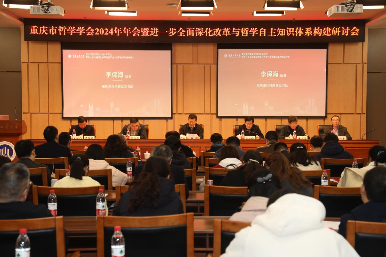 11月30日,由重庆市哲学学会与重庆工商大学主办,重庆工商大学马克思主义学院承办的重庆市哲学学会2024年年会暨进一步全面深化改革与哲学自主知识体系构建研讨会在重庆工商大学举行。重庆市社科联党组书记、副主席李保海出席会议并讲话。