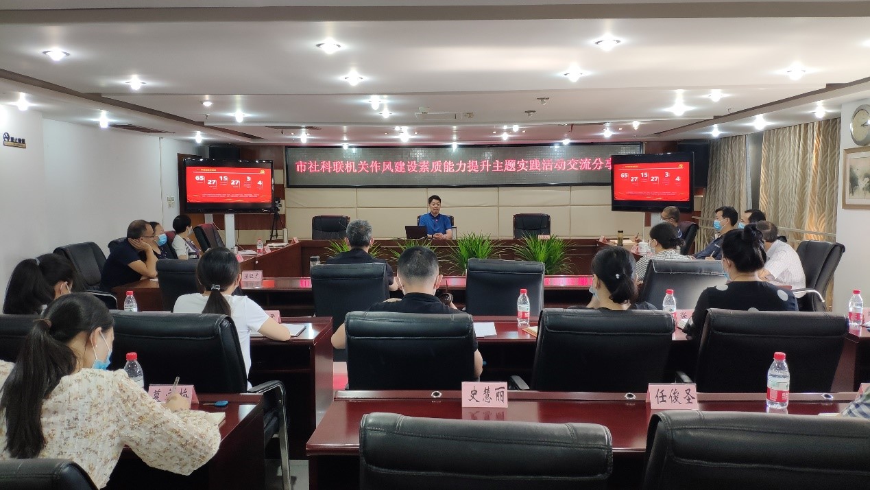 为扎实推进党史学习教育走深走实,切实把学史明理、学史增信、学史崇德的成果转化为改造主观世界和客观世界的实际行动,教育引导机关全体党员干部在锤炼党性、为民服务和推动发展上力行,不断提升机关党员干部的素质能力,努力为党和人民争取更大光荣。根据有关要求和工作安排,9月23日下午,市社科联在机关会议室,组织开展了机关作风建设素质能力提升交流分享主题实践活动。市社科联党组成员、副主席潘勇等领导出席活动;市社科联机关及直属事业单位党员干部共计30余人参加活动。活动由市社科联党组成员、副主席阳奎兴同志主持。