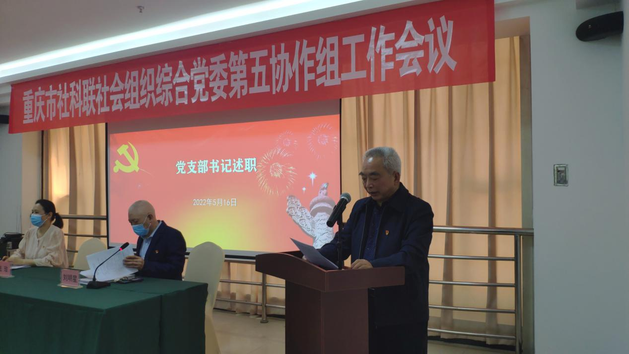 2022年5月16日下午,市社科联社会组织综合党委第五协作组以“深入学习贯彻市社科联第五次代表大会精神 聚力推进基层党组织建设”为主题召开工作会议。重庆市社科联社会组织综合党委委员、学会学术部副部长陆玫出席会议,来自37个研究院(所)的党支部书记、院(所)负责人及专职工作人员参加了会议。第五协作组组长刘明星主持会议。