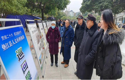 当天的展览中,还展出了“高峰薅秧歌”“开山号子”“新民春牛舞”“高安唢呐”“大石竹编”“垫江石磨豆花制作技艺”等垫江的市级非物质文化遗产相关内容,以及民法典、家庭教育、健康养生等社科知识,吸引了许多居民群众前来观看。