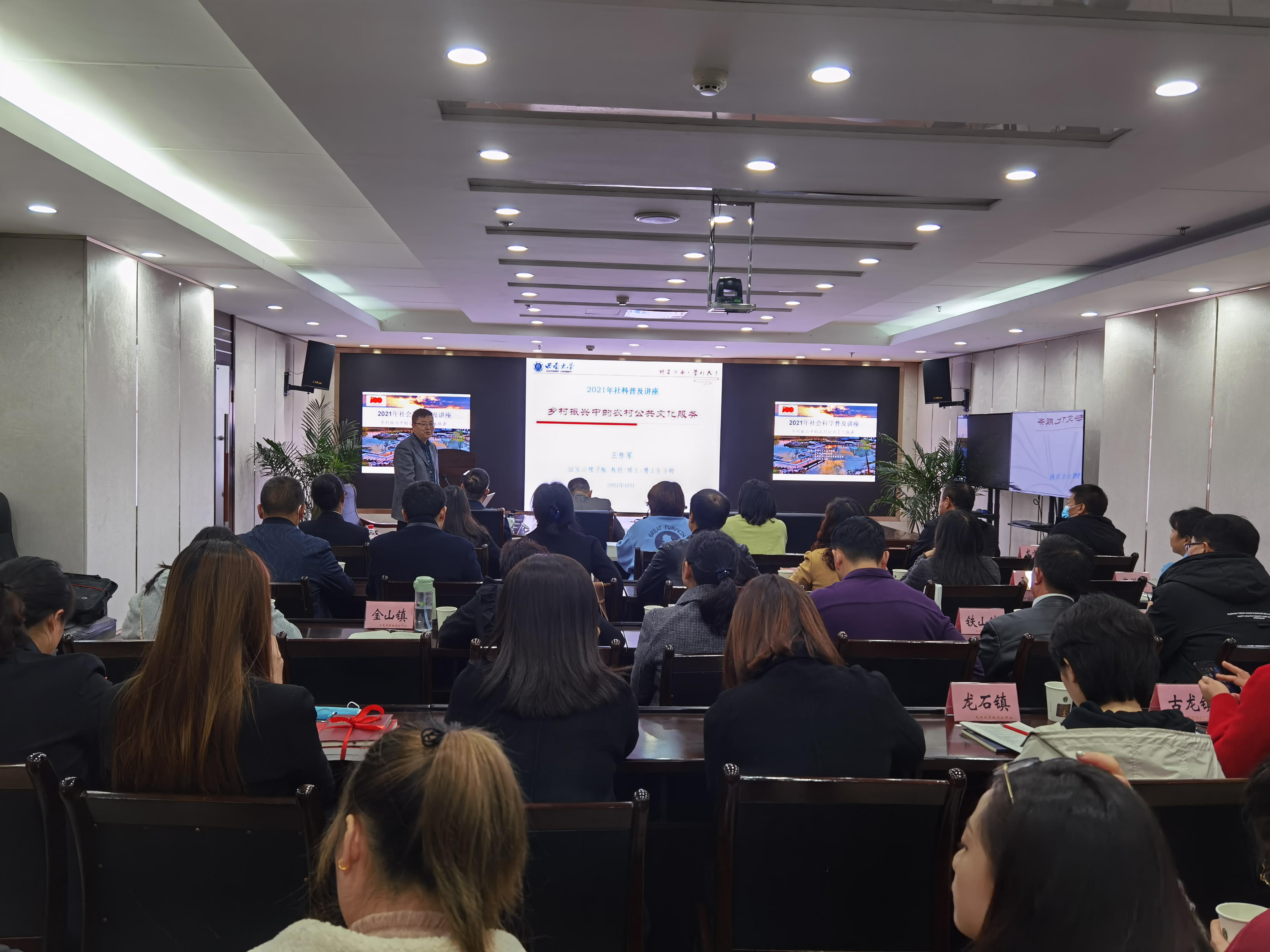 10月27日,大足区图书馆邀请西南大学国家治理学院教授、社科处副处长王作军,以《乡村振兴中的农村公共文化服务》为题举办讲座,大足区27个镇街文化站工作人员听取讲座报告。